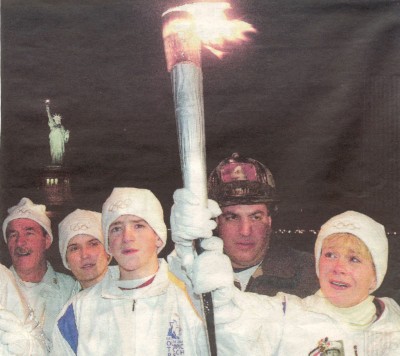 The torch's New York visit was part of a 13,500-mile journey across the country to the 2002 Winter Olympics in Salt Lake City.