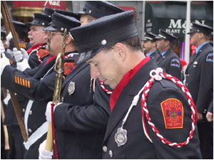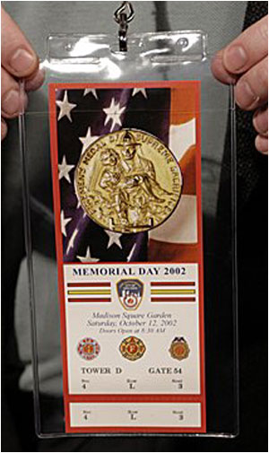 We attended the Firefighters Memorial Day service on Saturday, October 12, 2002, held at Madison Square Garden. Last year’s service, which was due to be held in October at the Firemen's Memorial at Riverside Drive and 100th Street, was cancelled because of 9/11.
