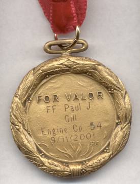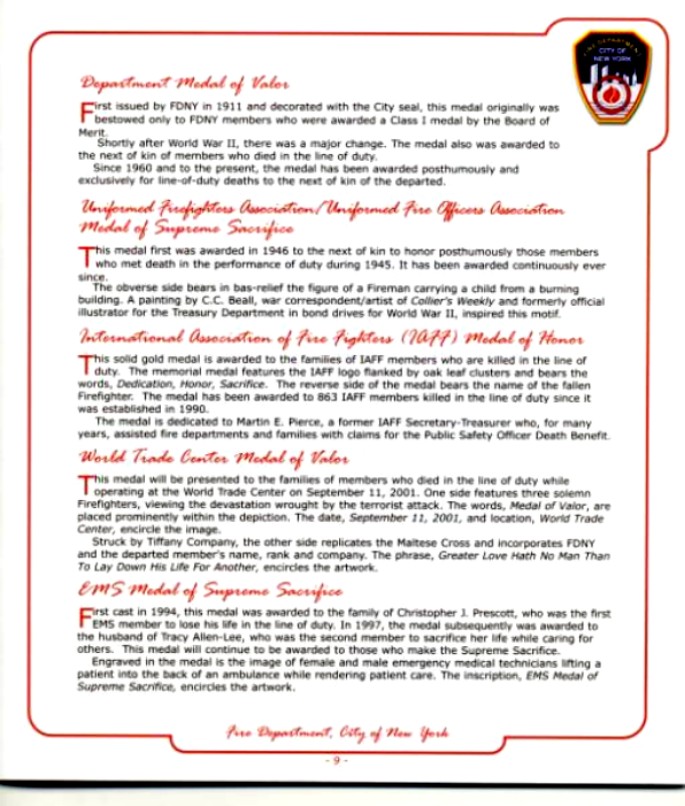 Some firefighters’ personal family photos were displayed instead of their official photographs. One of these photos was of a firefighter and his young children. The family was sitting near us and when the young daughter saw the photo of her dad and herself, she pointed to the screen and exclaimed “that’s me, that’s me!” Other than that heartbreaking outcry, the only sounds during this sad, numbing recitation were the sobs from the family members.