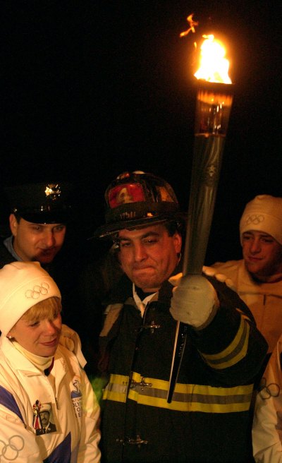 New Yorkers turned out by the thousands to watch the torch wend its way through Staten Island, Brooklyn and Queens, then jammed the Rockefeller Center Plaza in the rain to watch Mayor Rudolph Giuliani deliver the torch in the relay's last leg of the night. "I carry this flame in honor of my heroes in the New York Fire Department, the New York Police Department, the Port Authority Police Department, all the emergency workers and all those who gave their lives on September 11," said Giuliani, attired in a New York Police Department jacket and a New York Fire Department hat. Giuliani addressed a crowd that numbered over 10,000 in and around Rockefeller Center, according to police estimates. But it was a much smaller and quieter ceremony out on New York Harbor that packed the day's biggest emotional wallop. There, a group of 14 torchbearers who lost loved ones or co-workers in the terrorist attack on the World Trade Center passed the torch to one another and sang "God Bless America" as the New York Waterway ferry they were aboard rounded the Statue of Liberty. Soon after, the boat silently steamed past ground zero in lower Manhattan before docking near midtown Manhattan for the torch's final run of the day. "We have good days and bad days," said New York City firefighter Joseph Cerevolo, who lost hundreds of firefighting brothers Sept. 11. "But this helps uplift the spirits for a while, and that makes it all worth it." Said Erika Haub, whose firefighter husband, Michael, was killed in the trade center collapse: "I've got a 4-year-old son and a 17-month-old daughter. I'm only 23, but when my kids get older, they'll be able to say that their mom did something to honor their father." Even Salt Lake Organizing Committee President Mitt Romney, who took part in a similar ceremony Friday at the Pentagon, was unprepared for the feelings that poured out on that boat -- not unlike the water cannons that fired a foamy salute to the torch from the New York Fire Department boats that escorted the ferry. "Seeing the Olympic flame has always been a very powerful experience," said Romney. "But it has now become, in some respects, a torch for America in a time of healing. It's taken on a far more emotional and unifying role. "We always knew we'd be coming to Washington and New York," Romney added. "But we didn't realize how poignant this would be." The torch began its day much as it has many others, winding its way through the neighborhoods of three New York boroughs, and propelled along by dozens of carriers -- including New York Yankees Manager Joe Torre, New York Islander hockey star Alexi Yashin, a Russian Olympian and actor Christopher Reeve, who motored the flame from his wheelchair. But clearly, the thousands that assembled in Midtown for the torch's final journey were there to see New York's No. 1 hero -- Giuliani, named Sunday as Time magazine's Person of the Year. With crowd bellowing cries of "Rudy! Rudy!" the mayor took the torch handoff from New York Fire Department Capt. Richard Parenty at the plaza entrance and jogged at a brisk clip down to the Rockefeller Center ice rink, which held hundreds of burning candles for this occasion. There on a podium, to the strains of the official Olympic torch relay theme -- "Carry the Flame" -- Giuliani lighted a cauldron that will remain burning in the plaza until Wednesday. But the outgoing mayor, who will hand the reins to Michael Bloomberg next month, also took the time to do a little politicking -- surprise -- while on the stump, urging support for New York's bid for the 2012 Summer Olympic Games. He also wished Salt Lake City well. "I hope you have enormous success with the Winter Olympics," said Giuliani. "It's going to be great for the morale of the American people." Those who carried the torch Sunday certainly felt a surge in their spirits. While the tears flowed, so did a satisfaction that was hard for many to describe. "I just can't get over the emotion involved," said Mary Geraghty, whose late husband, Battalion Chief Edward Geraghty was one of the first firefighters to arrive at the World Trade Center on Sept. 11. "It's just an honor to do this. Not only for my husband but for everybody involved." "Next to my child being born, this is the greatest moment of my life," said New York Police Department officer Claudio Fernandez, who supervised the evacuation of 20,000 New Yorkers out of the areas surrounding the World Trade Center before and after the twin towers' collapse. "I've always loved the Olympics. To be able to do this is just amazing." |